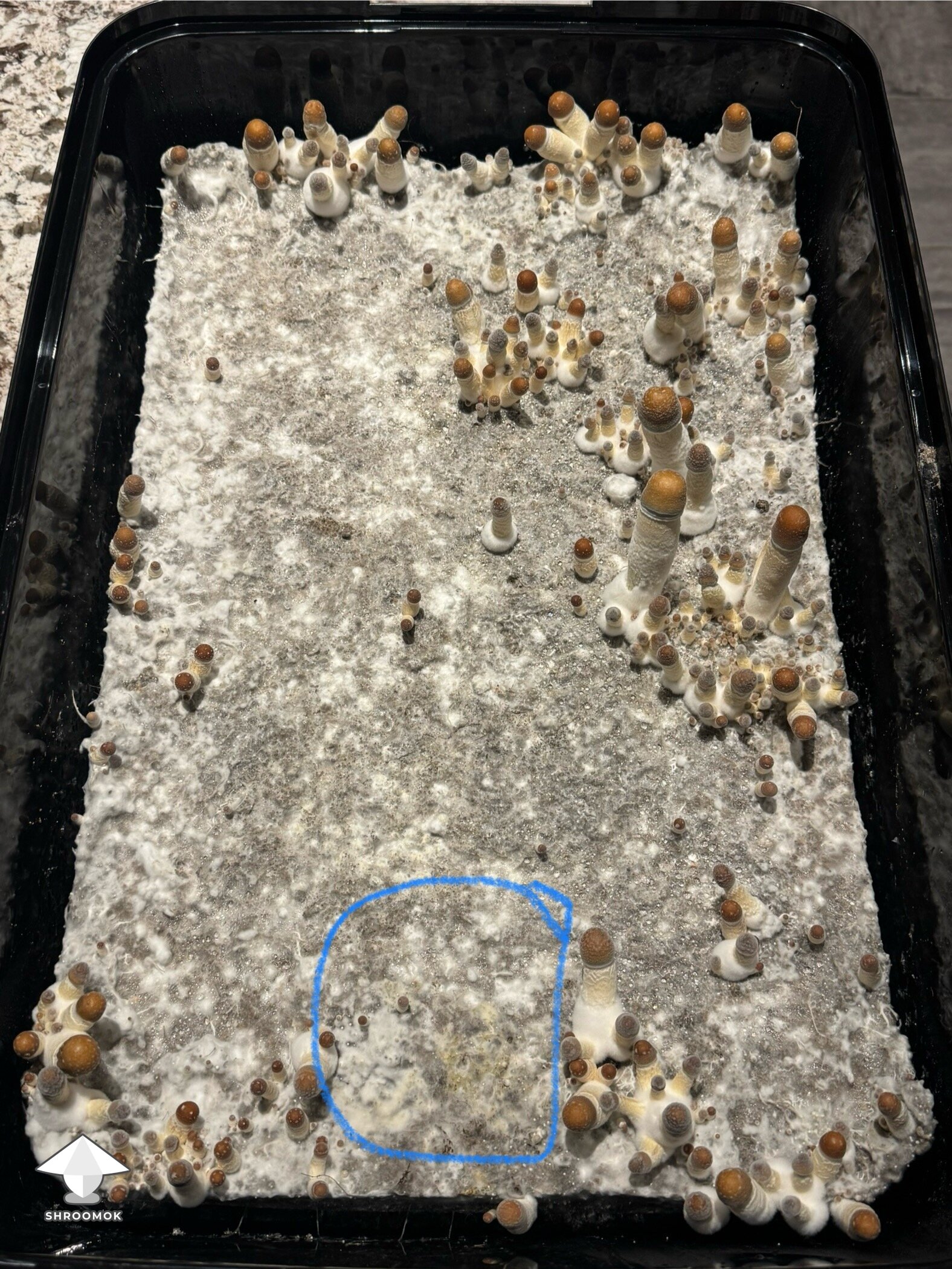 So I am going to start initiating more FAEs to try to cut down on the fuzzy feet, I thought I might not be doing enough in that department so thank you for that feedback. But when I took the top off of my tub I noticed this spot which is causing me a little bit of concern...is this contamination? If so,what to do??
