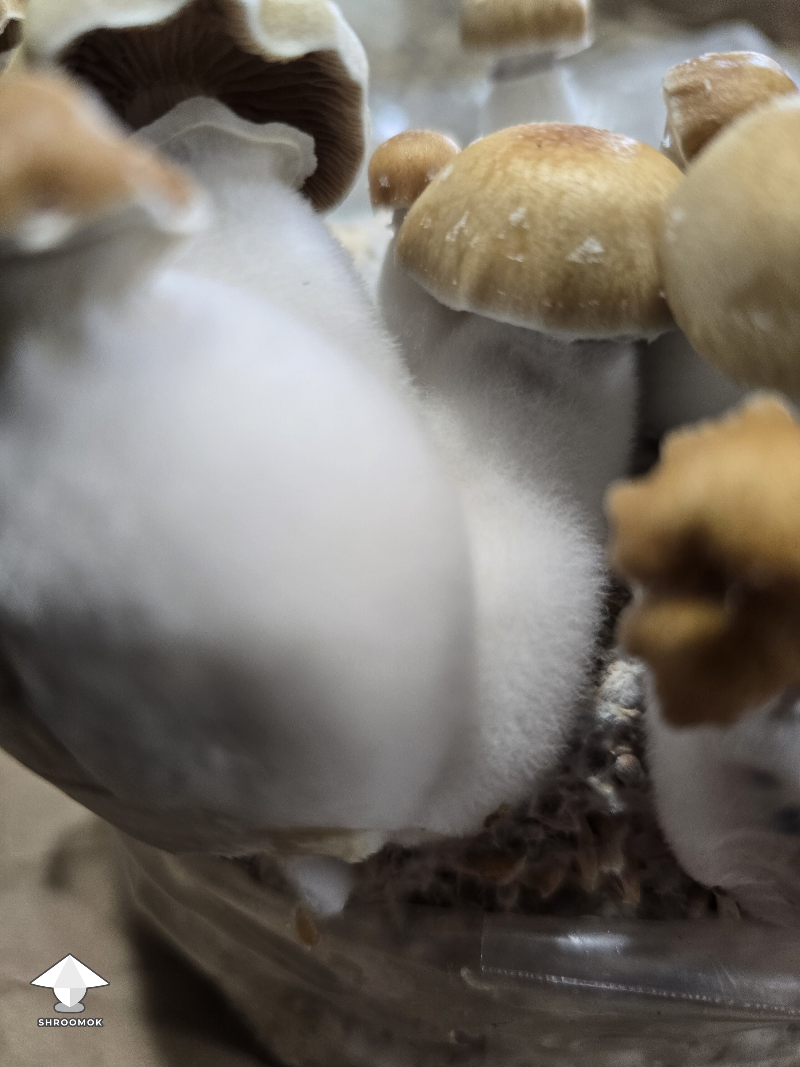 It’s also normal to see some fuzzy stems (or even caps) next to normal-looking shrooms, that’s fine.