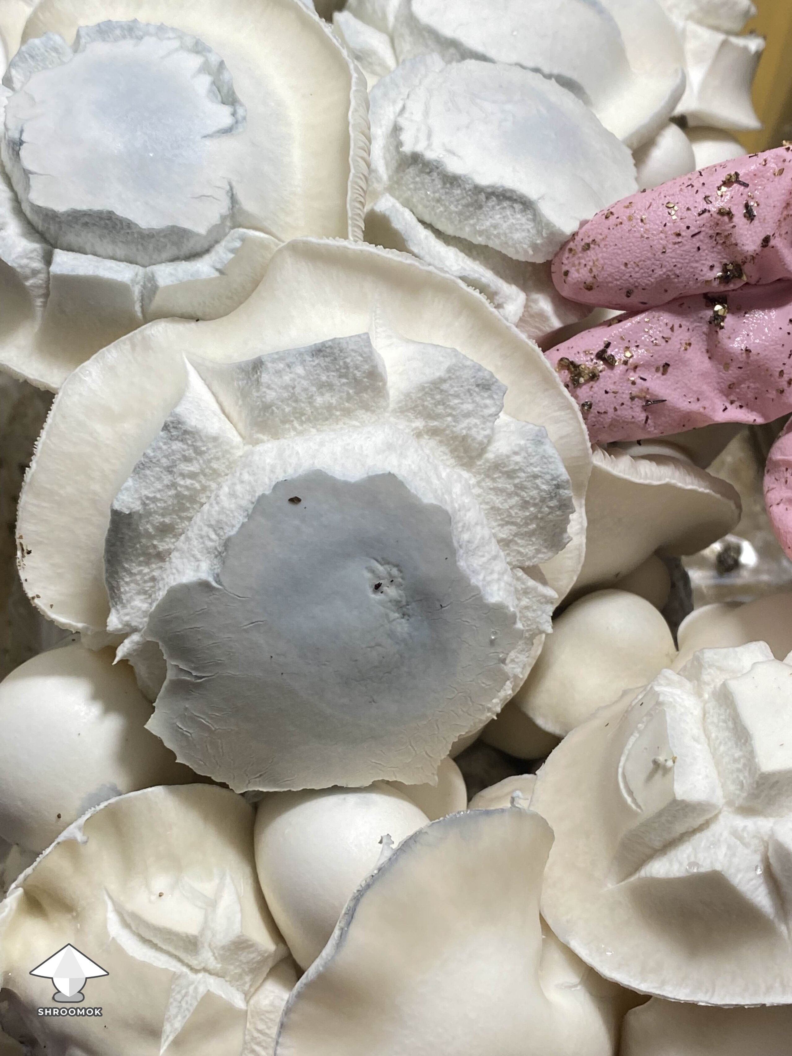 Photo gallery of Psilocybe Cubensis White Bunny mushrooms. This is a cross between two strains Albino Penis Envy x Namuang Thailand